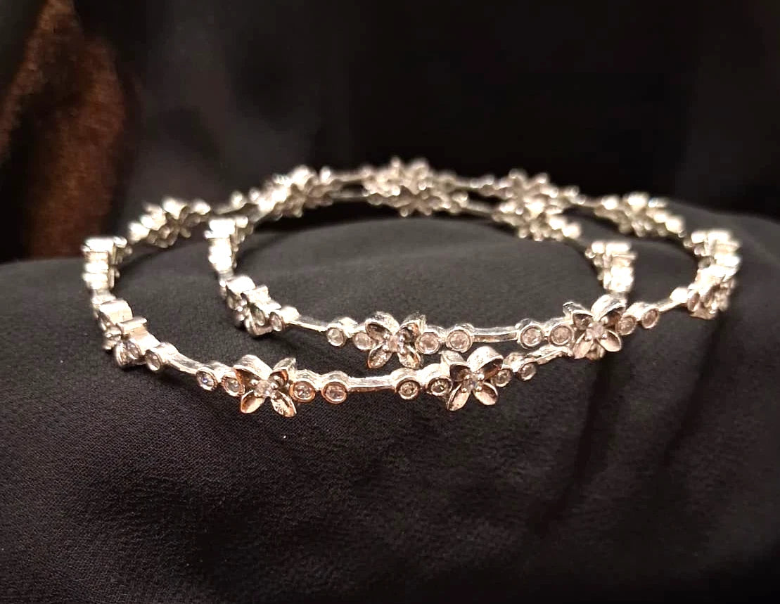 Pair of Cubic Silver Plated A Flower Bangles Women Fashion Jewelry 2.8 Size