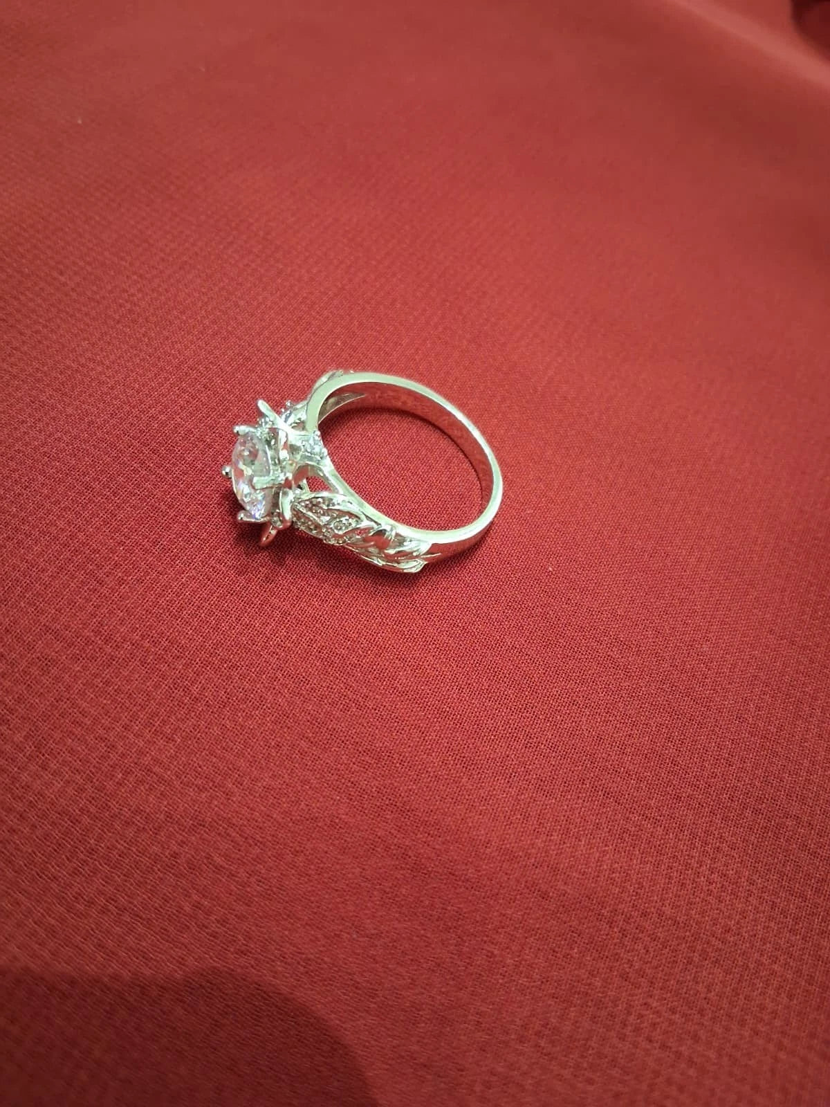 New Woman Silver Plated Ring With Cubic Zirconia Flower and Elegant Design S 8