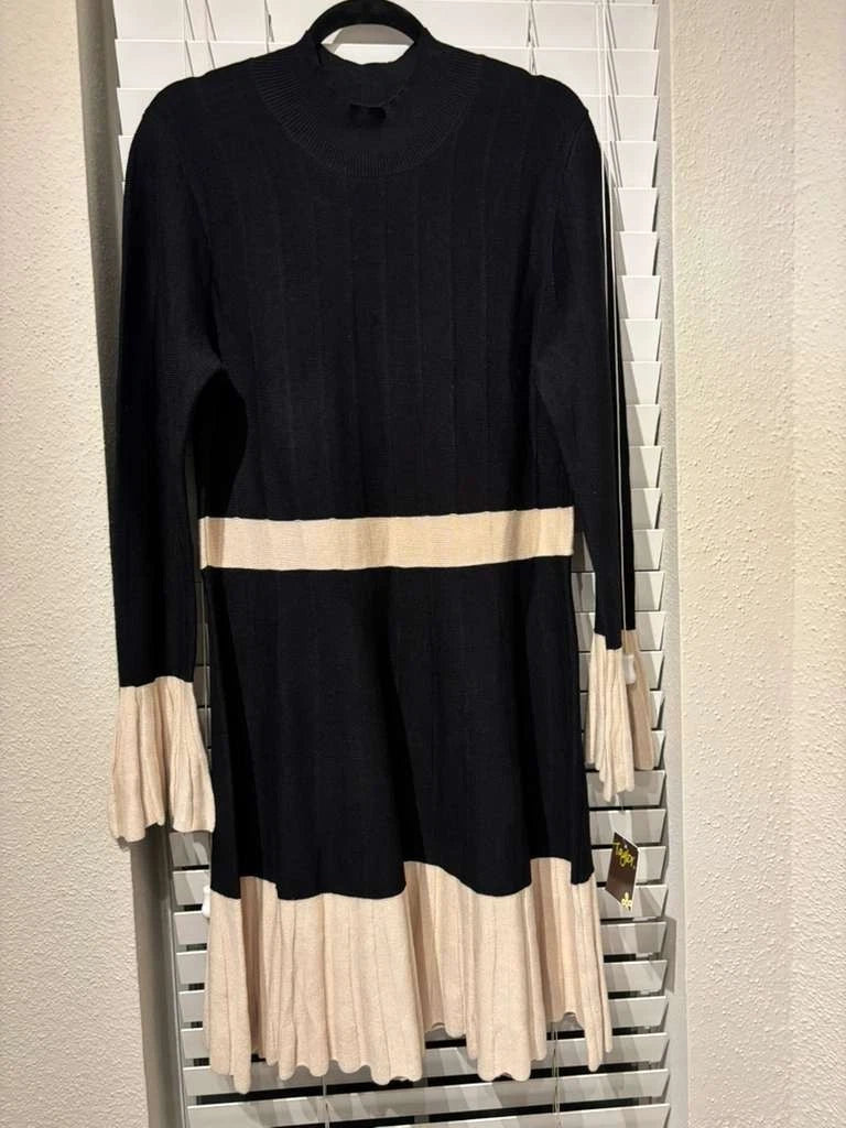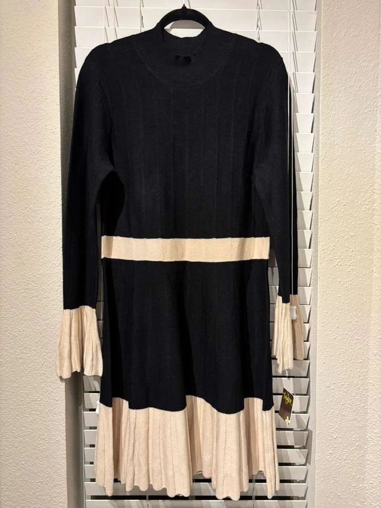 New TAYLOR Mock Neck Color Block Sweater Dress Women XL Winter Stylish Elegant